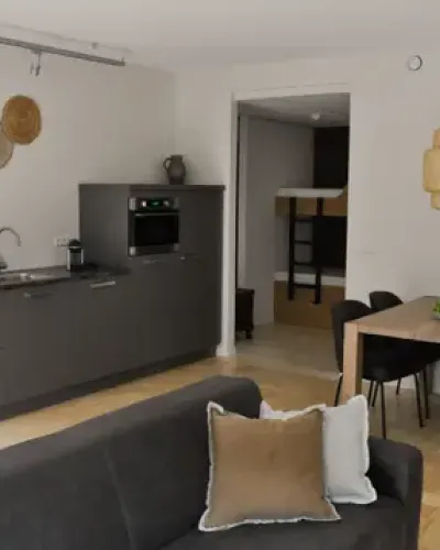 ✓ 1 Schlafzimmer ✓ Etagenbett im Alkoven im Flur ✓ Badezimmer mit begehbarer Dusche ✓ Separate Toilette ✓ Erdgeschoss ✓ Gemeinsame Terrasse direkt am Wasser
